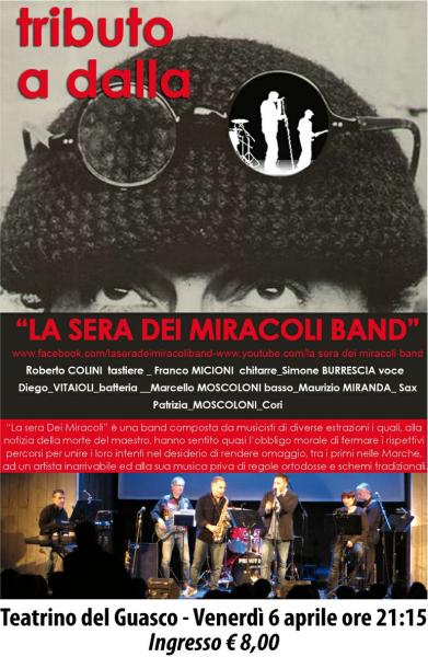 Suona il gruppo musicale “LA SERA DEI MIRACOLI” (youtube: la sera dei miracoli band)