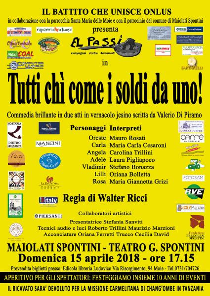 Commedia Teatrale 'Tutti chi come i soldi da uno!', Maiolati Spontini AN, 15/04/2018 - Marche in Festa