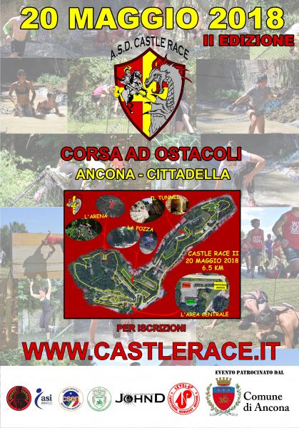 Castle Race, ovvero la prima Corsa ad Ostacoli di Ancona, è la corsa campestre con ostacoli nel teatro naturale del Parco comunale della Cittadella. Lungo un percorso di 6km troverai reti, scale sospese, muri, travi e fossati ad aspettarti. Il parco giochi che ogni adulto aspettava per un solo giorno nella città di Ancona. Castle Race è affiliato con la FIOCR (federazione italiana obstacle course race)