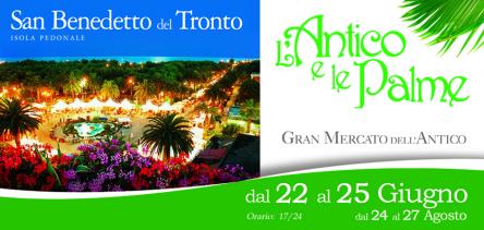 L’Antico e le Palme SAN BENEDETTO DEL TRONTO Isola Pedonale Dal 22 al 25 giugno 2018 orario 17-24 L'Antico e le Palme torna con la prima delle due edizioni estive dal 22 al 25 giugno 2018 nell'isola pedonale di San Benedetto del Tronto, nel cuore della riviera adriatica, come ormai da oltre 25 anni. L'appuntamento sambenedettese con l’antiquariato ed il collezionismo è una delle rassegne più meritevoli tra i mercatini dell’antiquariato del centro Italia e non solo, divenuto negli anni un punto di riferimento per migliaia di appassionati di oggetti che fanno parte del nostro passato e delle nostre tradizioni. L'edizione di giugno sarà arricchita da una mostra culturale dedicata ai capolavori dei grandi artisti del XX secolo e contemporanei di proprietà delle gallerie e dei collezionisti che parteciperanno a L’Antico e le Palme. Sarà una bella occasione per ammirare nello scenario unico della Riviera Adriatica opere rare e preziose dei grandi maestri come Mirò, Schifano, Algardi, Guttuso e tanti altri big dell’arte moderna e contemporanea. Seguendo le più recenti tendenze nazionali e internazionali è il modernariato il protagonista indiscusso della manifestazione! I collezionisti amano gli oggetti creati tra la fine della seconda guerra mondiale e gli anni Sessanta, sia perché esprimono l’anima di questo stile sia perché sono connotati da stili e materiali ben diversi da quelli usati negli oggetti di antiquariato. È negli anni ’50 che si afferma l’industrial design, grazie al quale mobili ed oggetti all’avanguardia diventano alla portata di tutti. E ancora i numerosi espositori, provenienti da varie regioni italiane, ma anche dall'estero, offrono oggetti rustici ed attrezzi in legno, tipici della tradizione contadina locale, ma anche pezzi raffinati provenienti da dimore nobili e borghesi. Senza dimenticare le curiosità anni ’50, le stampe, i lumi, i giocattoli, i mobili antichi, i libri, la biancheria ed i pizzi della nonna, cartoline ingiallite dal tempo, pubblicità di marchi storici, e tante altre curiosità che vi sorprenderanno. Oggetti e accessori per arredare le dimore, per collezionisti esperti o alle prime armi in cerca di una passione da coltivare. L’Antico e le Palme vi aspetta nell’Isola Pedonale di San Benedetto del Tronto dal 22 al 25 giugno 2018 dalle 17 alle 24. INGRESSO LIBERO PROSSIMA EDIZIONE 2018: 24 - 27 agosto 2018, orario 17-24 info: Segreteria organizzativa Brandozzi A. & C snc tel. 0736 256956 - 393.9862023 www.mercatiniantiquari.com info@mercatiniantiquari.com FB @mercatino.antiquario IG #mercatiniantiquari