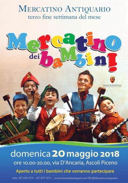 Il Comune di Ascoli Piceno vi invita alla 1ª edizione del Mercatino dei Bambini che si svolgerà domenica 20 maggio in via D’Ancaria in concomitanza con il Mercatino Antiquario.