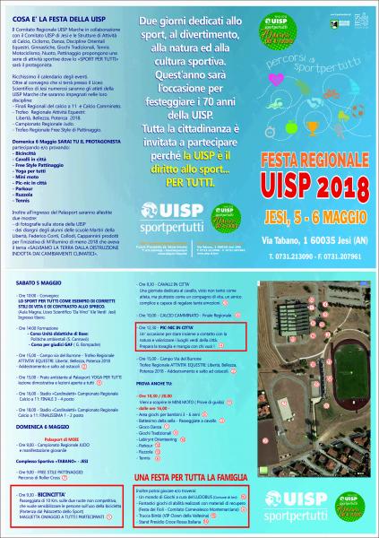 Il Comitato Regionale UISP Marche in collaborazione con il Comitato UISP di Jesi e le Strutture di Attività di Calcio, Ciclismo, Danza, Discipline Orientali, Equestri, Ginnastiche, Giochi Tradizionali, Motociclismo, Nuoto, Pattinaggio e Tennis propongono una serie di attività sportive dove lo “Sport Per Tutti” sarà il protagonista.