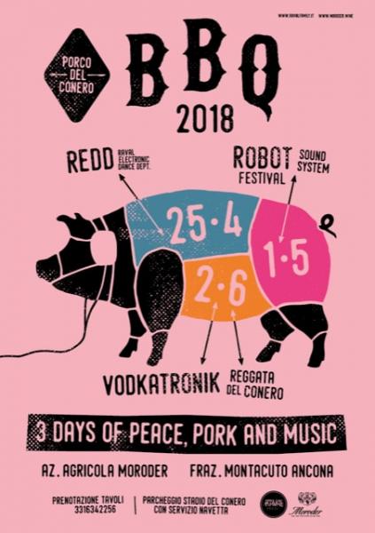 Avanti con le feste di primavera. BBQ si riaccende il 2 Giugno col terzo degli appuntamenti in programma per la saga del Porco del Conero organizzata come ogni anno dall’equipe di Raval Family. L’appuntamento è di nuovo alle Cantine Moroder & Agriturismo Aiòn (via Montacuto 121, Ancona) fra colline nel pieno della primavera e casolari fatati. Si inizia a mezzogiorno e si continua fino a mezzanotte, la partecipazione è gratuita. Gli ingredienti sono quelli consolidati: piste da ballo con sonorità elettroniche e melodie reggae; incontri, chiacchiere, pietanze cucinate con passione e vini e bevande di qualità. Anche in questa edizione quattro autobus navetta collegano gratuitamente il parcheggio dello stadio del Conero alle Cantine Moroder dove non si può posteggiare, così da evitare parking selvaggio e rispettare la serenità del Parco.
