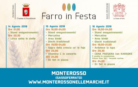 Il 14-15 e 16 agosto 2018 il borgo di Monterosso (Sassoferrato), nel cuore degli Appennini, ospiterà la sesta edizione di Farro in Festa.