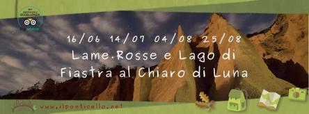 Programma dettagliatoAperitivo/degustazione in agriturismo, dedicato ai tipici prodotti dell’area montana, per aprire la nostra serata all’insegna del chiaro di luna. Alla ricca degustazione segue l’escursione notturna alle Lame Rosse, “la piccola Cappadocia delle Marche”. Trekking dall’insolita chiave notturna, per ammirare le meravigliose formazioni delle Lame Rosse alla luce della luna. Lago di Fiastra luccicante dai riflessi dell’astro d’argento e la fitta lecceta nella quale si snoda il nostro sentiero, aggiungono fascino ad una delle escursioni più suggestive delle Marche. E, al ritorno, di un bagno notturno nel Lago di Fiastra che ne pensate?