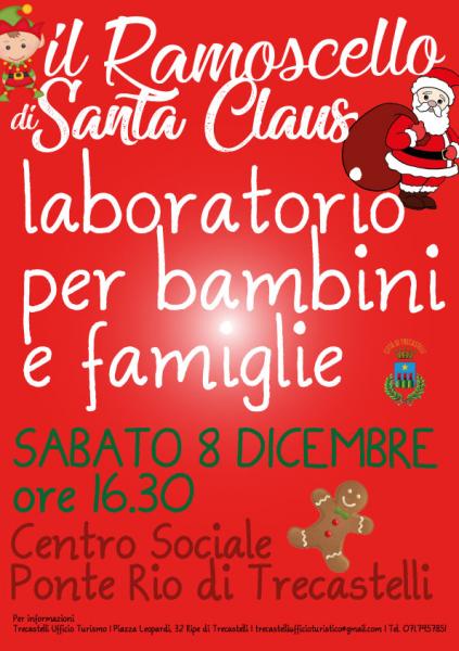 Sabato 8 dicembre 2018, alle ore 16.30, si terrà al Centro Sociale a Ponte Rio di Trecastelli “IL RAMOSCELLO di SANTA CLAUS” laboratorio creativo per bambini e famiglie a cura di Maria Vittoria Castaldello. Grandi e piccini avranno a disposizione diversi materiali, tra cui panno lenci, carta, stoffa, cartoncino colla e colori, con cui potranno arricchire il loro “ramoscello natalizio”. Un pomeriggio all’insegna dell’arte e della creatività, aspettando il Natale. La partecipazione al laboratorio è a ingresso libero.