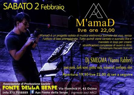 M'amaD è un progetto solista di musica elettronica suonata dal vivo, senza l'utilizzo di basi preregistrate.