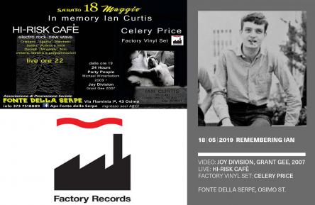 Sabato 18 maggio è la ricorrenza della scomparsa di Ian Curtis, paroliere, cantante e uno dei fondatori dei Joy Division, personaggio che ha influenzato la cultura giovanile degli anni ottanta e novanta. Di fondamentale importanza negli stessi anni fu l'etichetta di Manchester, la Factory Records che produsse band del calibro di Joy Division, New Order, Happy Monday, A Certain Radio, James, Durutti Column ed altri ancora.