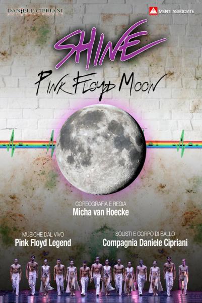 SHINE Pink Floyd Moon, con un cast complessivo di una trentina di componenti, è prodotto da Daniele Cipriani Entertainment e Menti Associate di Gilda Petronelli, in coproduzione conFondazione Pergolesi Spontini di Jesi. Dopo l’anteprima assoluta il 5 giugno al Teatro Pergolesi di Jesi, lo spettacolo andrà in scena in prima mondiale al Ravenna Festival (Pala Mauro De Andrè) l’8 giugno (biglietti in vendita su www.vivaticket.it e www.ticketone.it). Il tour estivo proseguirà: il 24 luglio all’ “Universo” di Assisi, il 27 luglio al Teatro Antico di Taormina, il 2 agostoall’Armonie d’Arte Festival Parco Archeologico Nazionale Scolacium Borgia (CZ), il 5 settembre al Teatro Romano di Verona, il 7 settembre all’Arena Sferisterio di Macerata per proseguire, a partire da novembre, con la stagione 2019/2020 nei maggiori teatri italiani (tra cui il Teatro Olimpico, Roma 3-8 marzo 2020, per le “Giornate della Danza” dell’Accademia Filarmonica Romana).