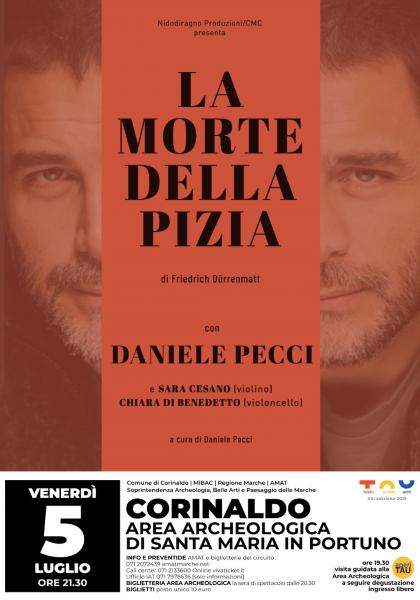 Nell'ambito della rassegna TAU - Teatri Antichi Uniti: "La morte della Pizia" di Friedrich Durrenmatt con Daniele Pecci e Sara Cesano (violino) e Chiara di Benedetto (violoncello) Area archeologica di S. Maria in Portuno, Via Santa maria in portuno 25