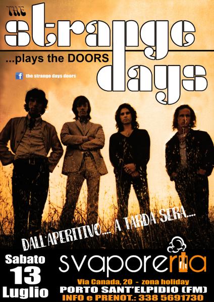 The Strange Days è il nuovo progetto musicale che rende omaggio allo storico quartetto dei THE DOORS. Ripercorreremo i più grandi successi della band Californiana con sonorità e strumentazione "vintage"! Un appuntamento imperdibile!