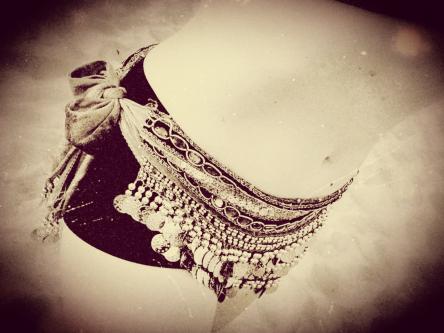 Lezione di Danza del Ventre sulla spiaggia al tramonto.