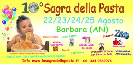 Tutto il programma, il menù e soprattutto il progetto sociale che si andrà a finanziare è visibile sul sito dell’evento www.lasagradellapasta.it o telefonando al numero 334.9832976 o seguendo la pagina facebook. Il bellissimo borgo di Barbara si trasformerà per 4 giorni in una grande festa grazie all’impegno dell’associazione di volontariato DoUnaMano ma soprattutto alla collaborazione del Comune di Barbara e dei numerosi sostenitori e volontari. Si ricorda che in caso di maltempo solo gli spettacoli verranno annullati, sarà comunque possibile mangiare al coperto nella nostra struttura in muratura.