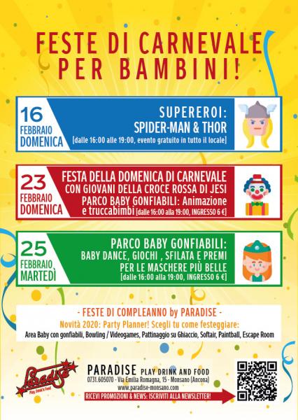 DOMENICA 23 FEBBRAIO >> FESTA DELLA DOMENICA DI CARNEVALECON GIOVANI DELLA CROCE ROSSA DI JESIPARCO BABY GONFIABILI: Animazione e truccabimbi[dalle 16:00 alla 19:00, INGRESSO 6 €]