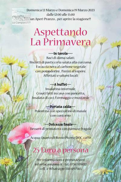 Vi aspettiamo il 12 e 19 Marzo per aprire la stagione... con un AperiPranzo da leccarsi i baffi! Informazioni e prenotazione 0734 939012 – email info@lacampana.it