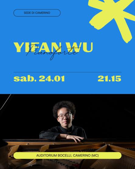 Si apre ufficialmente sabato 24 gennaio 2026, all’Auditorium Bocelli dell’Accademia della Musica “Franco Corelli”, la 56esima Stagione Concertistica di Camerino con un recital pianistico di eccezionale livello affidato a Yifan Wu, giovane pianista cinese insignito del Primo Premio del 65° Concorso Pianistico Internazionale Ferruccio Busoni di Bolzano nel settembre 2025, dove ha conquistato anche il Premio del Pubblico.