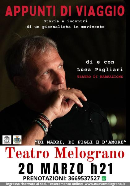 Luca Pagliari racconta episodi e dettagli legati a quarant'anni di giornalismo. Tracce di varia umanità, storie che hanno unito o diviso, dettagli, colori, profumi e soprattutto parole. Sono i suoi appunti di viaggio. Tre appuntamenti di sole parole per una riscoperta dell'incontro e della narrazione condivisa. Tre serate tra persone disposte all'ascolto. Nessuna pretesa, nessuna morale, nessun insegnamento e soprattutto nessuna conclusione.