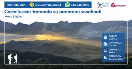 Escursione al tramonto a Forca di Presta, porta d’accesso agli altipiani più suggestivi dei Monti Sibillini. Cammineremo tra praterie d’alta quota mentre il sole cala dietro le creste, tingendo il paesaggio di colori caldi e silenzi profondi.