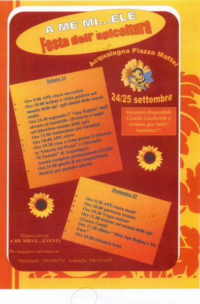 Festa dell'apicoltura con mercatini enogastronomici e ricco di divertimento secondo un nutrito programma.
