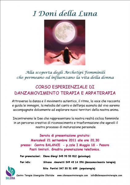 Mer 21 set ore 20:30 presso il Centro Balance p.zzle I Maggio 18 Serata gratuita di presentazione con Rita Partini (voce e arpa celtica) e Silvana Amoretti (danzaterapeuta) I DONI DELLA LUNA