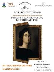 Quest’anno, in sinergia con il MiBAC, il Polo Museale di Montefiore dell’Aso propone “Amor di Patria. I Tesori di Montefiore in mostra” , con la prosecuzione delle celebrazioni in occasione del 150° anniversario dell’Unità d’Italia attraverso la mostra L’Unità d’Italia per me, che espone gli elaborati degli studenti sui diversi modi di intendere il sentirsi italiano e la mostra sensoriale, legata al “Circuito delle Erbe Spontanee”, Le erbe dei Saperi e dei Sapori – Alchimie verdi per una bellezza senza tempo, con l’opportunità, nella sera di sabato 24 settembre, di degustare antiche ricette presso l’Agriturismo “La Campana” di Montefiore dell’Aso (prenotazione obbligatoria allo 0734/939012).