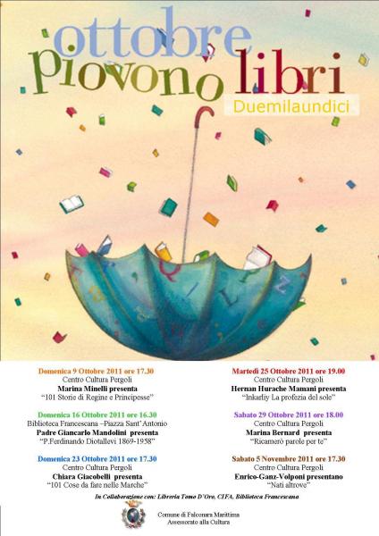 All'interno della manifestazione "Ottobre Piovono Libri" 2011, il Comune di Falconara Marittima - Assessorato alla Cultura propone una serie di incontri con gli autori.