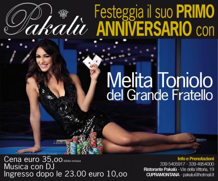 VENERDI 14 OTTOBRE, MELITA TONIOLO SARA OSPITE D'ONORE AL PAKALU DI CUPRAMONTANA. PER FESTEGGIARE INSIEME IL PRIMO ANNO DI QUESTO LOCALE!!