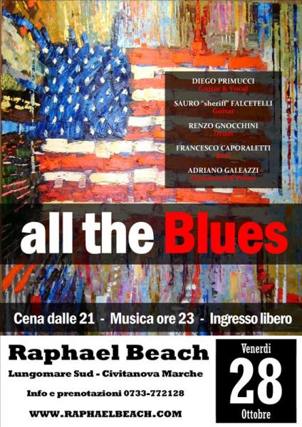 Info & Prenotazioni 0733-772128Gli ALL THE BLUES BAND nascono nell’estate del 1986 nella provincia di Macerata. Animati da una grande passione per il blues elettrico del dopo guerra,la band inizia ad esibirsi nei piccoli e fumosi locali della regione suonando gli standard dei grandi maestri del blues (Muddy Waters,Robert Johnson,Albert King). Nel corso degli anni la band è rimasta fedele al repertorio classico del blues elettrico, arricchendo però le proprie “scalette” anche con brani originali. La band offre il meglio di sè negli spettacoli live che garantiscono due ore di musica trascinante e sanguinia,dando molto spazio all’improvvisazione individuale ed al groove di gruppo. Da allora la band ha subito varie modifiche nella formazione che si è stabilizzata da 10 anni nella seguente line-up.