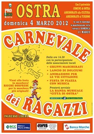 Sfilata di carri allegorici e gruppi mascherati, lancio di dolciumi, animazione per le vie del paese, festa in piazza con musica e la banda musicale "Città di Ostra".