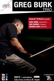 GREG BURK pianoforteRON SEGUIN contrabbassoANANDA GARI batteriaGreg Burk, pianista e compositore di Detroit, è tra i più raffinati della scena jazz contemporanea.Info e prenotazione tavoli: 071981914