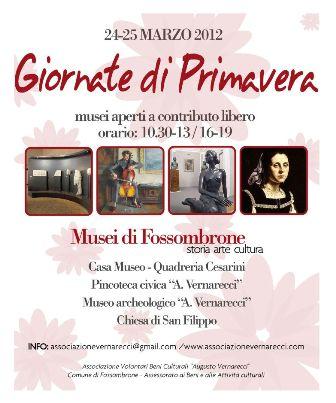 In occasione della XX Edizione della Giornata di Primavera indetta dal FAI – Fondo Ambiente Italiano, i Musei di Fossombrone (Casa Museo Quadreria Cesarini, Pinacoteca civica “A. Vernarecci”, Museo archeologico “A. Vernarecci” e Chiesa di San Filippo) aprono le loro porte con un weekend con ingresso a contributo libero.Sarà possibile visitare le strutture museali forsempronesi nel seguente orario: 10.30 – 13 / 16 – 19. Sarà disponibile un servizio di guida su richiesta all’interno delle strutture.Al piano terra della Casa Museo – Quadreria Cesarini è allestito un bookshop in cui sarà possibile richiedere informazioni e materiale gratuito sui Musei di Fossombrone, oltre ad acquistare i cataloghi delle mostre ospitate dalla strutture e guide del territorio.Nella giornata di domenica 25 marzo nella Chiesa di San Filippo sarà inoltre allestito il terzo appuntamento della XIII Edizione della Stagione Concertistica forsempronese che vedrà esibirsi Sax For Fun, con la partecipazione di Javier Girotto, alle ore 17.30. Musiche di: Mitchell – Zeni – Girotto – Piazzolla – Ortelli. Javier Girotto sax soprano, flauti andini.