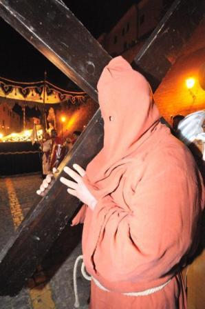 Come vuole la tradizione, saranno i soldati romani a piedi e a cavallo ad aprire il corteo che, insieme al centurione, scorteranno Cireneo. Questa figura, scalza ed incappucciata, avvolta da una tunica scarlatta, ha da sempre destato grande curiosità e interesse da parte del pubblico: la sua identità resta infatti, di anno in anno, sempre segreta. La scelta di incarnare le vesti di Cireneo e di portare sulle proprie spalle il peso della croce, è un gesto penitenziale volontario, e il fedele che decide di compierlo rimane anonimo...suscitando non pochi bisbigli al suo passaggio da parte dei curiosi.