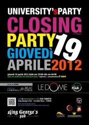 The last night, the last emotion... dopo tre anni dalla sua nascita è arrivato l'atto finale per quanto riguarda le feste universitarie... poi?? Chi vivrà saprà. Con grande piacere lo staff di University's Party comunica che giovedì 19 aprile nei locali del King George's Pub a partire dalle ore 22 si terrà l'ultima festa universitaria.
