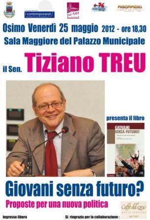 E’ la volta del Senatore Tiziano Treu ad essere ospite dei Circoli Culturali “Ju-Ter Club Osimo” e “+76”, nell’ambito della Rassegna Letteraria “I Contemporanei: conversazioni con chi scrive il presente”. Venerdì 25 maggio, alle ore 21.15 presso la Sala Conferenze A.S.T.E.A. in via Guazzatore n. 163 ad Osimo, l’ex Ministro del lavoro presenterà la sua ultima pubblicazione "Giovani senza futuro? Proposte per una nuova politica.”.
